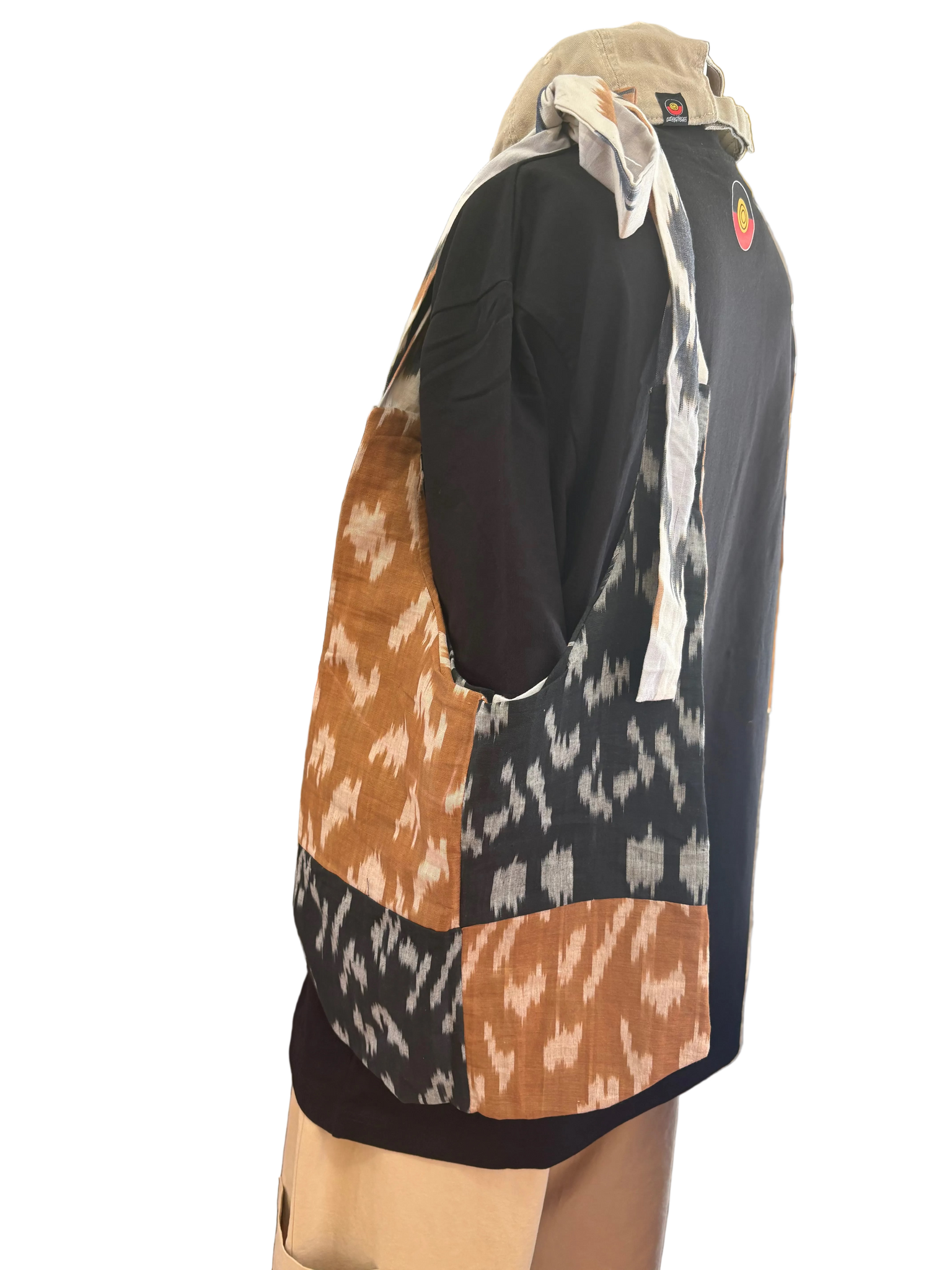 Zero waste cotton/hemp tote bags with long adjustable tie strap.