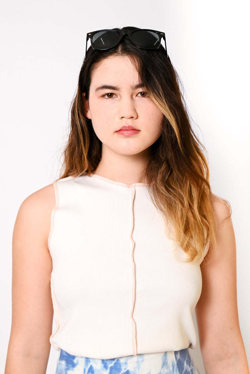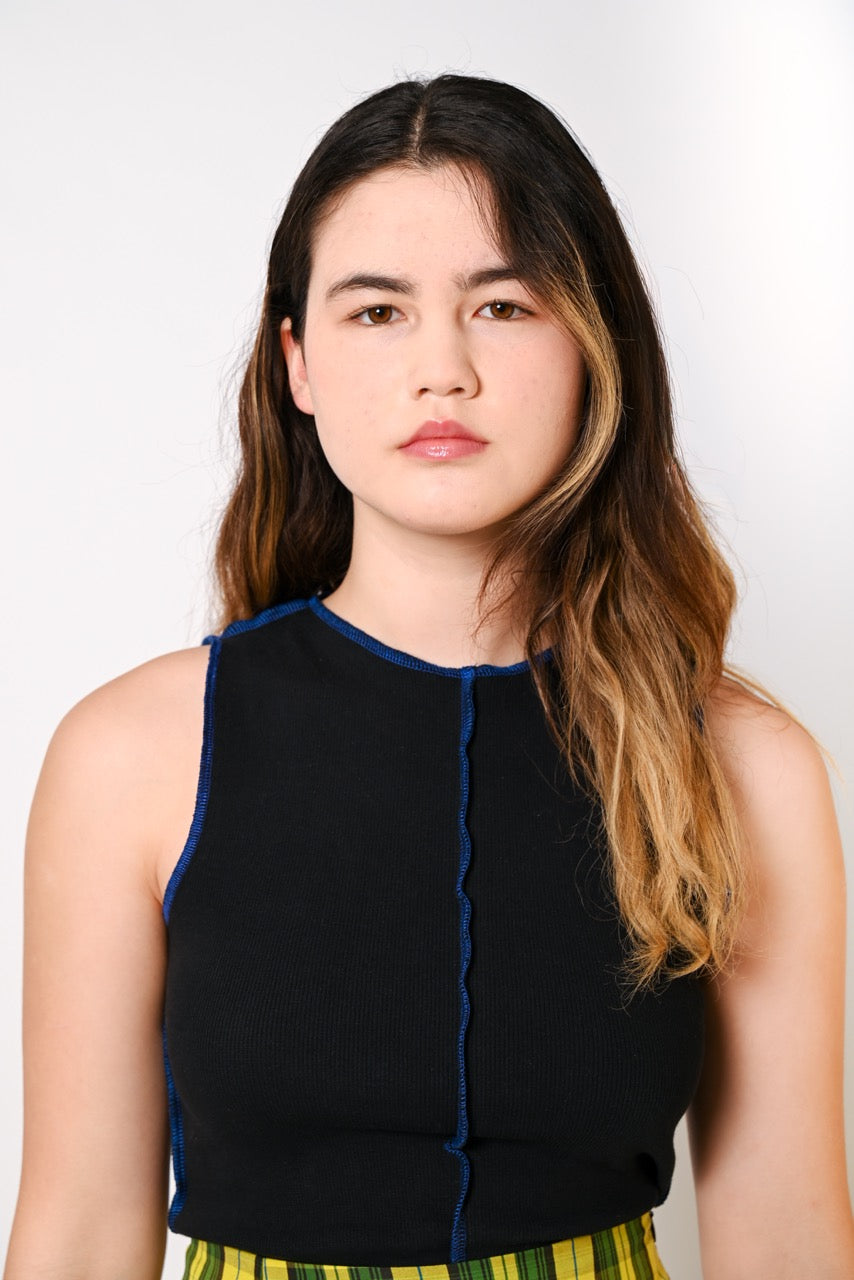 An update on a TSS classic, our rib tank features wider straps and contrast stitch detailing to elevate this wardrobe staple. The 1x1 rib knit fabric allows for a comfortable amount of stretch without losing its shape.